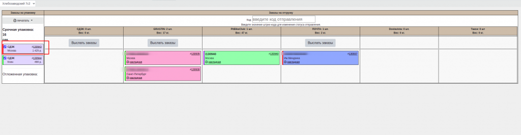Склад видит заказы на упаковку, печатает сборочный лист и собирает товар, после этого товар сканируется в интерфейсе упаковки.